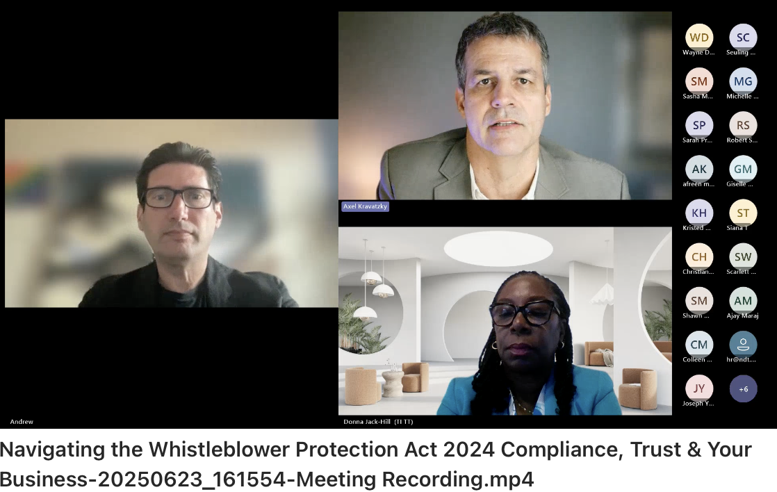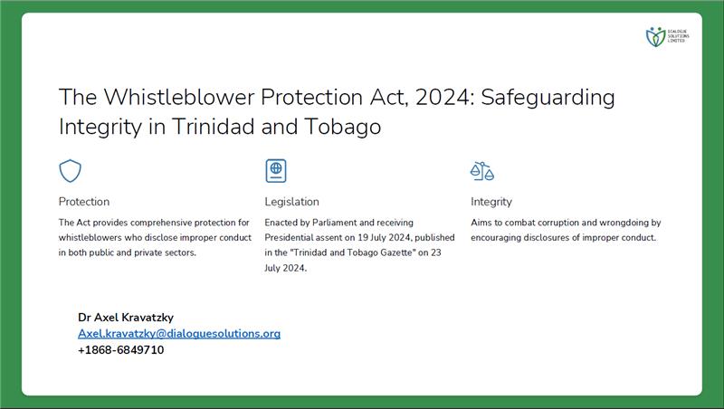 On World WhistleBlowers Day ( 23 June), Dialogue Solutions Limited and the Trinidad and Tobago Transparency Institute hosted a free webinar focused on Trinidad & Tobago’s new Whistleblower Protection Act, a significant step forward in the region’s accountability and compliance landscape.